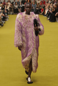 Highlighting faux fur and leather, the co-ed collection also celebrated its 100-year-old roots.