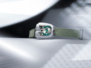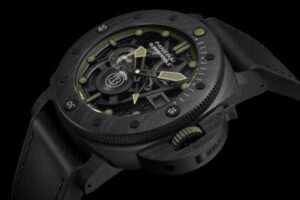 Made with Carbotech – a lighter material – the Submersible S BRABUS Verde Militare Edition has green accents that distinguish the watch.
