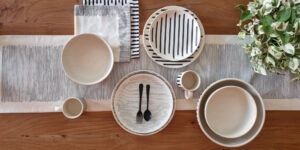 Graphic lines and dots grace the entire collection, bringing a quiet and opulent look to your home.