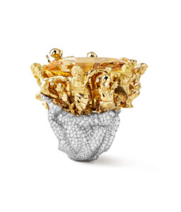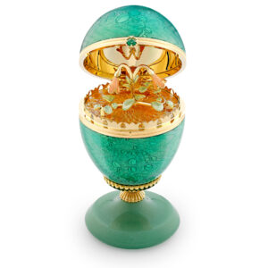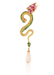 Central to the jeweler’s identity, the gorgeous green egg objet with glimmers of gold uses enamel for unparalleled craftsmanship.